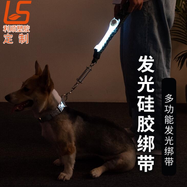 寵物牽引繩LED發光硅膠綁帶